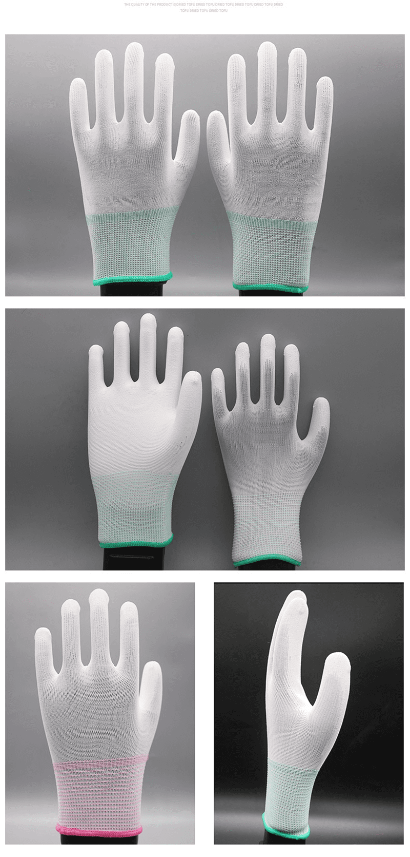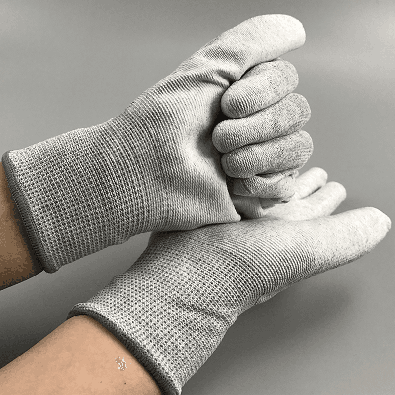 দুর্দান্ত অ্যান্টি-স্ট্যাটিক এফেক্ট: গ্লাভসে কার্বন ফাইবার পরিবাহী সুতা কার্যকরভাবে স্থিতিশীল বিদ্যুতের জমে রোধ করতে পারে, সংবেদনশীল বৈদ্যুতিন উপাদানগুলির স্থিতিশীল বিদ্যুতের ক্ষতি এড়াতে এবং অপারেশনাল সুরক্ষা নিশ্চিত করতে পারে।