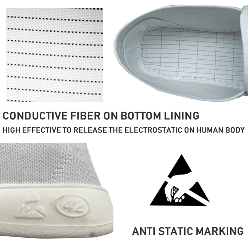 ইএসডি অ্যান্টি-স্ট্যাটিক জুতাগুলি পিইউ বা পিভিসি দিয়ে তৈরি, এবং তলগুলি অ্যান্টি-স্ট্যাটিক এবং নন-স্লিপ উপকরণ দিয়ে তৈরি, যা কার্যকরভাবে স্থির বিদ্যুৎ স্রাব করতে পারে এবং স্থির বিদ্যুত জমে থাকা সম্ভাব্য বিপদগুলি এড়াতে পারে। জুতাগুলি বৈজ্ঞানিকভাবে স্থিতিশীল বিদ্যুৎটি সহজেই মাটিতে প্রবর্তিত হতে পারে তা নিশ্চিত করার জন্য ডিজাইন করা হয়েছে, যার ফলে উত্পাদন সরঞ্জাম এবং বৈদ্যুতিন পণ্যগুলির সুরক্ষা রক্ষা করে। সর্বোত্তম অ্যান্টি-স্ট্যাটিক প্রভাব অর্জনের জন্য, অ্যান্টি-স্ট্যাটিক জুতাগুলি অ্যান্টি-স্ট্যাটিক পোশাক, অ্যান্টি-স্ট্যাটিক ইনসোলস এবং অ্যান্টি-স্ট্যাটিক মোজাগুলির পাশাপাশি একটি সম্পূর্ণ অ্যান্টি-স্ট্যাটিক সমাধান গঠনের জন্য অ্যান্টি-স্ট্যাটিক ফ্লোর সিস্টেমগুলির সাথে একত্রে ব্যবহার করা দরকার।